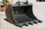 Stein- und Sortierlöffel                                                  mit verschleißfesten Rippen. Abstand nach Kundenwunsch