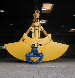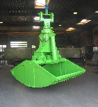 Zweischalen-Verladegreifer  Schüttgut verladen für Schiffs- und Waggonver- und entladung. 1 bis 3 m³ Inhalt, 1000 - 2000 mm Breit. Verladegreifer auch mit niedriger Grabkurve - schont Schiffs- und Waggonboden.          für Bagger bis 60 t
